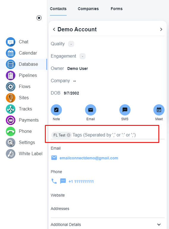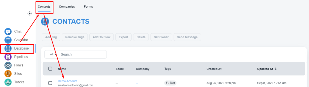 Please, navigate to the “Dashboard’ on the left menu bar and click on the ‘Contact’ on the top menu bar.