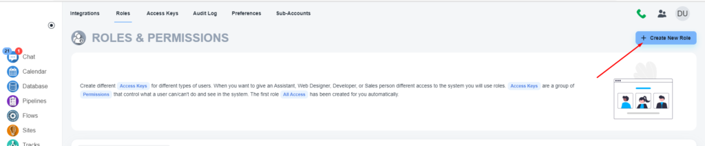 Please, click on the ‘Create New Role’ button to create a role